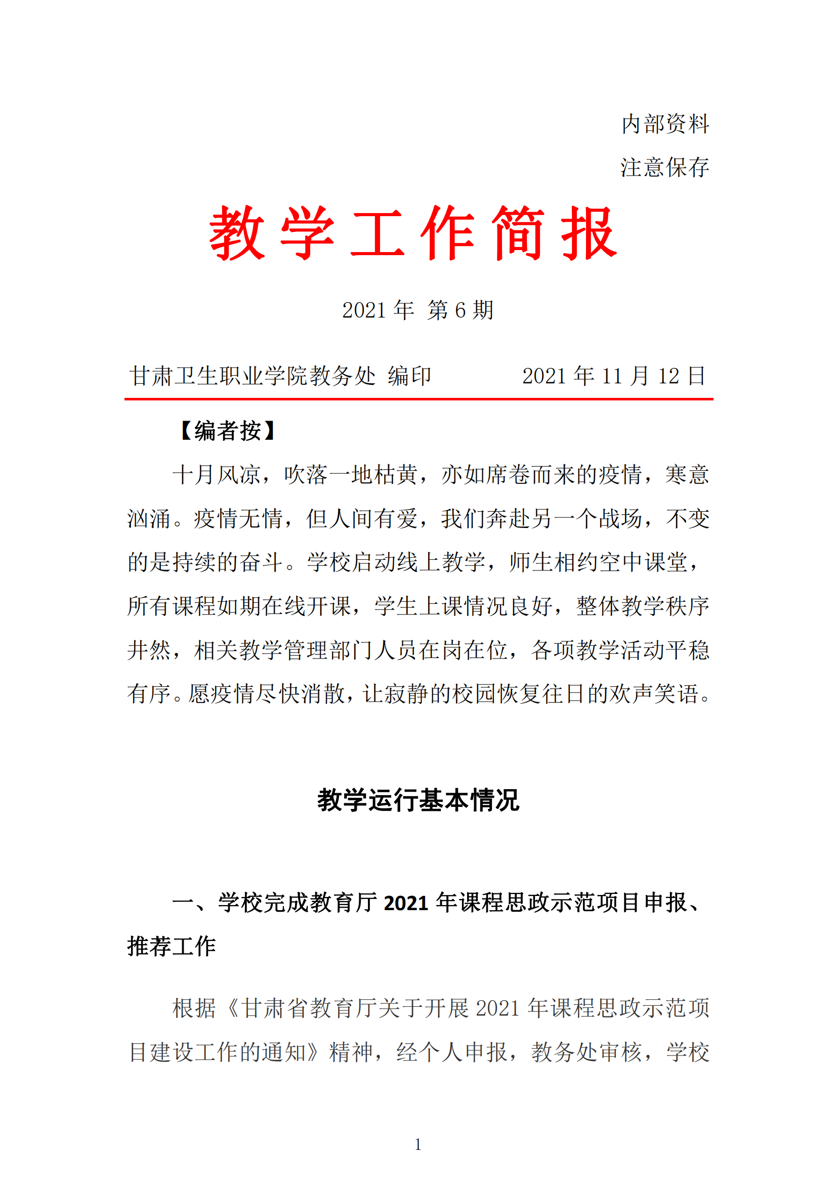 2021年10月份教学工作简报