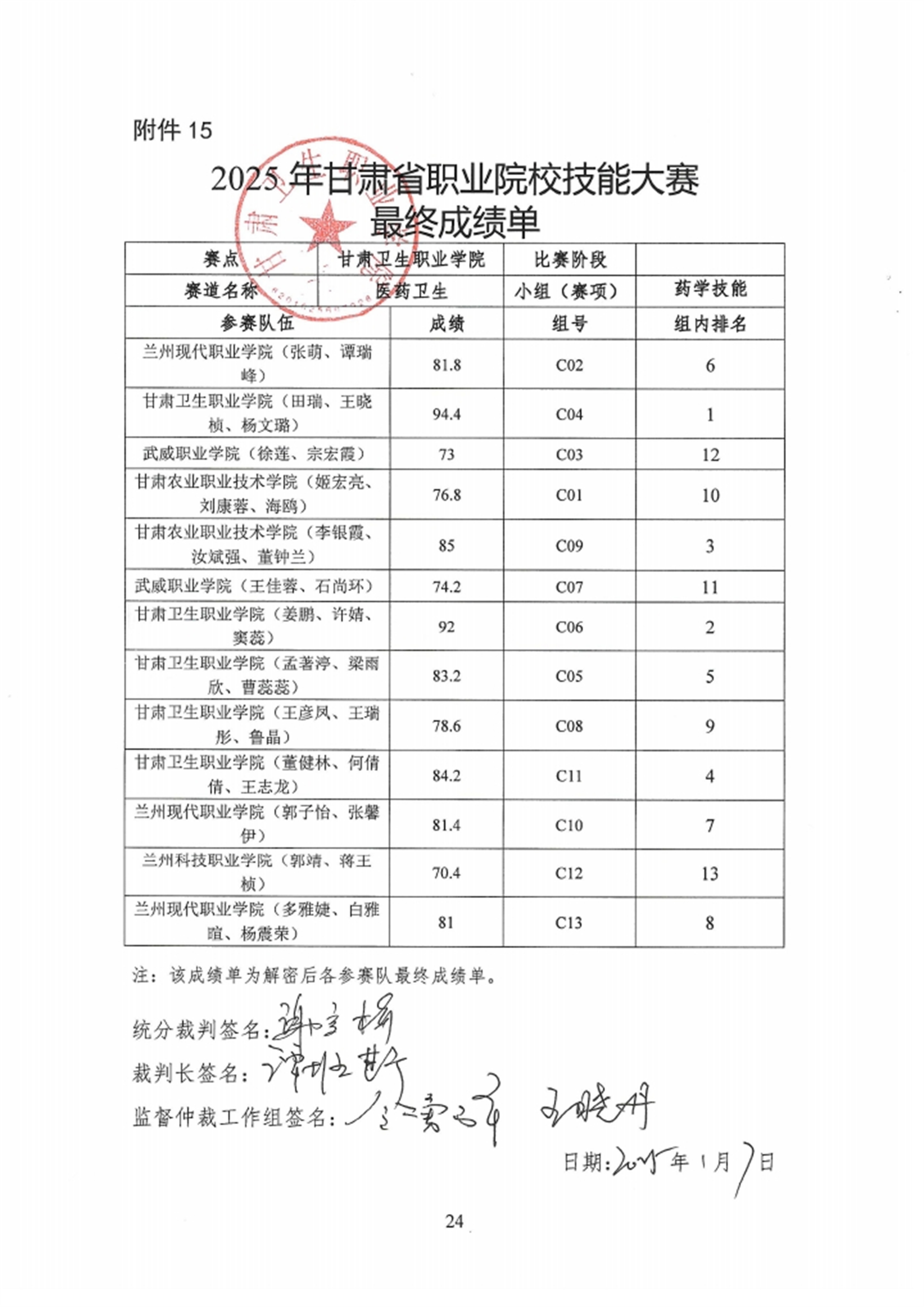 2025年甘肃省职业院校技能大赛KY开元集团官网赛点药学技能赛项成绩公示