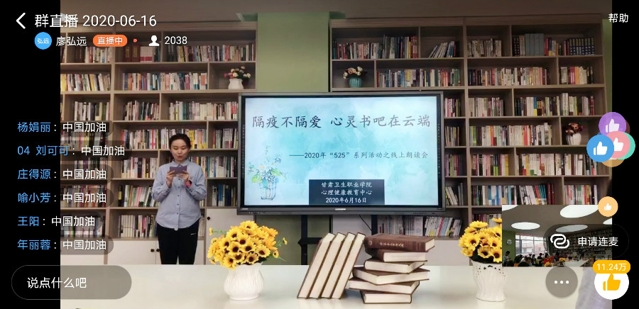本次活动受到一致好评,线上直播平台点赞累计达11万余条,最后在学生线上互动“中国加油”关键词的分享中圆满结束了本次朗读会活动。