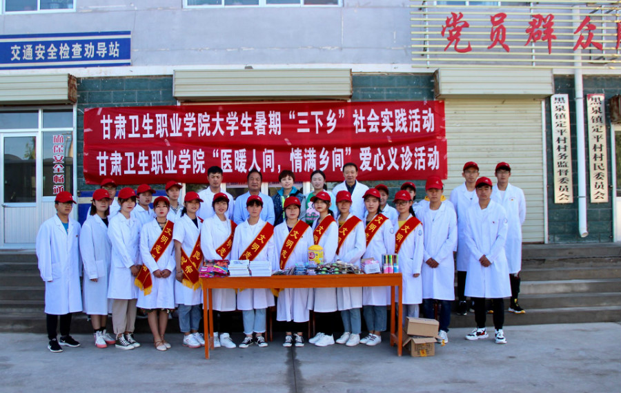 为深入学习贯彻习近平新时代中国特色社会主义思想、党的十九大和十九届二中、三中全会精神,引领学校广大青年学生在丰富的实践活动中深刻感受新中国成立70周年所取得的伟大成就,领会习近平总书记在纪念五四运动100周年大会上的重要讲话精神,在加强志愿服务中增强责任感和使命感,在社会实践中受教育、长才干、做贡献,根据省委宣传部、团省委、省教育厅、省学联等十部委联合通知要求,在共青团助力脱贫攻坚精神扶贫暨2019年甘肃省大中专学生志愿者暑期文化、科技、卫生“三下乡”社会实践活动精神的感召下,从7月13日开始,校团委在学校党政领导的高度重视与支持、学校门诊部的大力配合下紧紧围绕“青春心向党,建功新时代”主题,组织开展了2019年暑期“三下乡”社会实践活动。