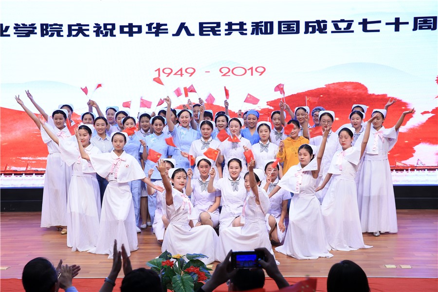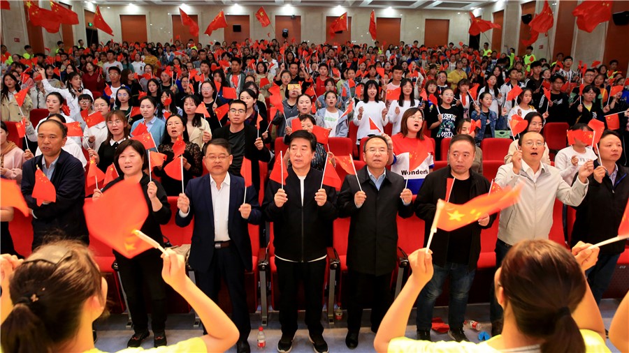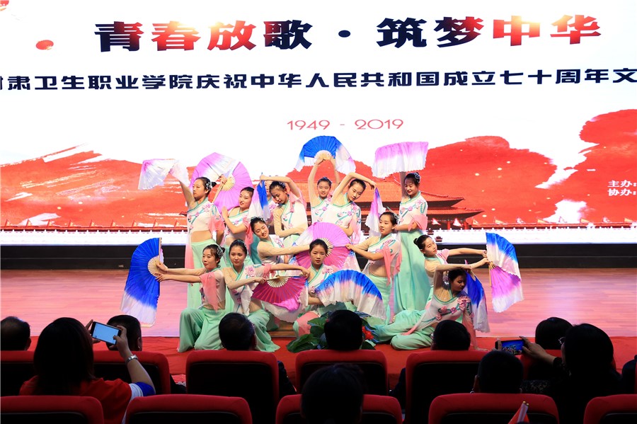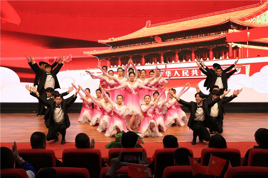 乾坤飞转逢盛世,举国欢庆齐欢畅。为热烈庆祝中华人民共和国成立70周年,表达全校师生对伟大祖国的深深祝福,9月27日晚,由校团委主办的“青春放歌·筑梦中华”庆祝中华人民共和国成立七十周年文艺晚会在一号教学楼报告厅举行。校党委书记姜德民、副校长康逢民、毕效武、黄刚,各处室、二级学院负责人及师生代表近500人观看了此次演出。