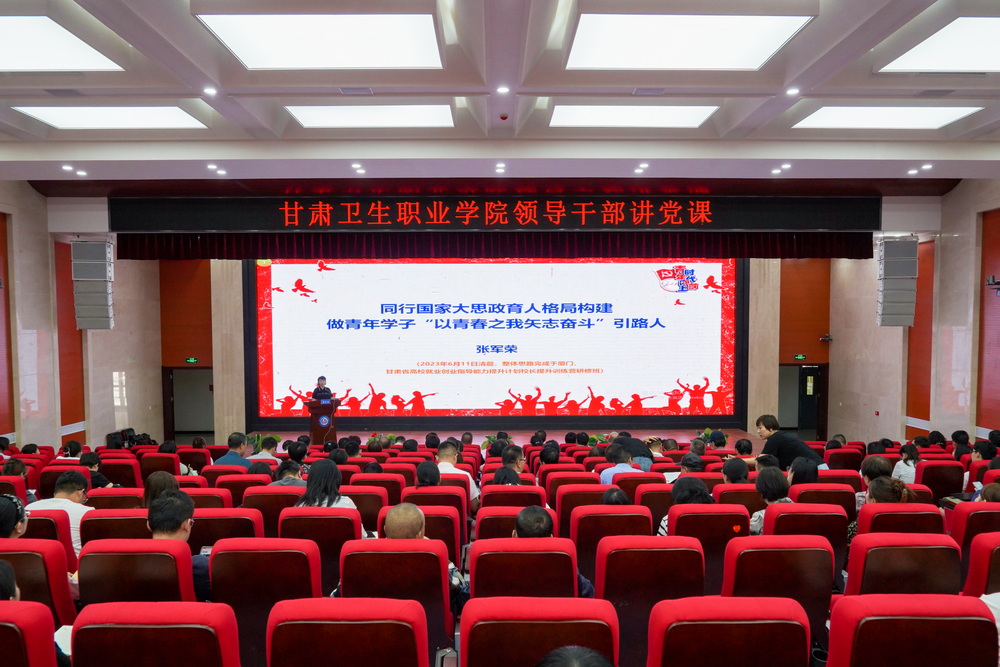 青年是社会力量中最积极、最有生气的力量,国家的希望在青年,民族的未来在青年。6月27日下午,张军荣副校长以“同行国家大思政育人格局构建,做青年学子‘以青春之我矢志奋斗'引路人”为题,在学校1号教学楼学术报告厅为全体党员讲授了一堂严肃认真的专题党课,校领导、副处级干部以及各处室部门、二级学院的党员同志参加了本次党课。