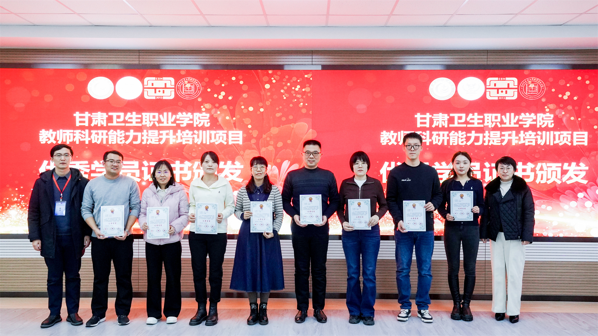 仪式现场,兰州大学马彬教授、葛龙教授、申希平老师为全体参训教师颁发了结业证书。并为8名表现突出教师颁发优秀学员证书。田金徽教授表示,本次培训班时间安排紧凑,学习任务繁重,但全体参训教师学习态度端正,能深入细致地思考问题,积极主动地交流,学习氛围浓厚,不仅掌握了科研的基本方法和技能,在科研思维和创新意识上也有了很大的进步。他表示,培训班结束后仍可通过线上线下的方式为老师们答疑解惑,相信通过大家的努力,肯定会在科研过程中有所收获。