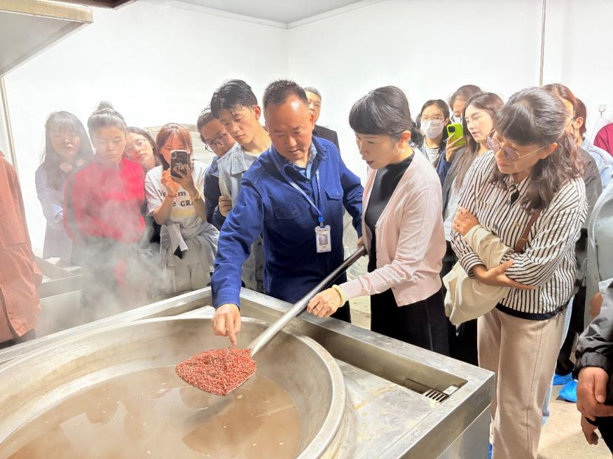 与会人员参观了产教融合实践教学基地,在王保院长带领下参观了藏医院门诊部、住院部和药浴医技部,了解了医院文化底蕴、藏医药特色诊疗技术、发展定位等。万玛旦增带领师生在奇正传统藏医药传承中心参观了传统藏药炮制技术,对本次藏医专业学生为期一周的教学见习活动进行了安排,下午在实践基地对学生开展见习内容、管理制度、安全知识等方面的培训。