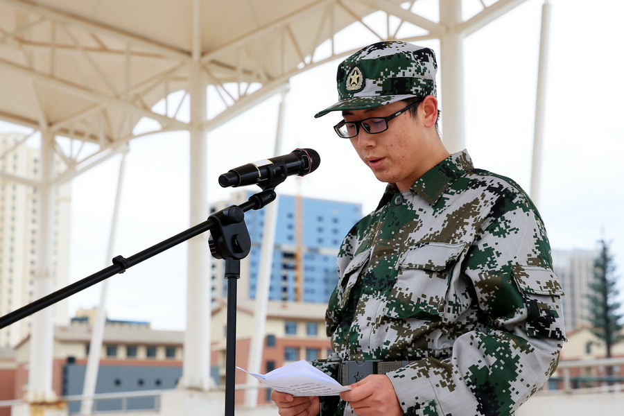 2019年10月9日下午14:30,学校2019级新生军训开训暨国防教育大会在田径场召开。校领导、军训领导小组成员、承训单位教官、参加军训各班级辅导员和班主任与2019级全体新生参加了本次大会。大会由学生工作处处长张绍进主持。
