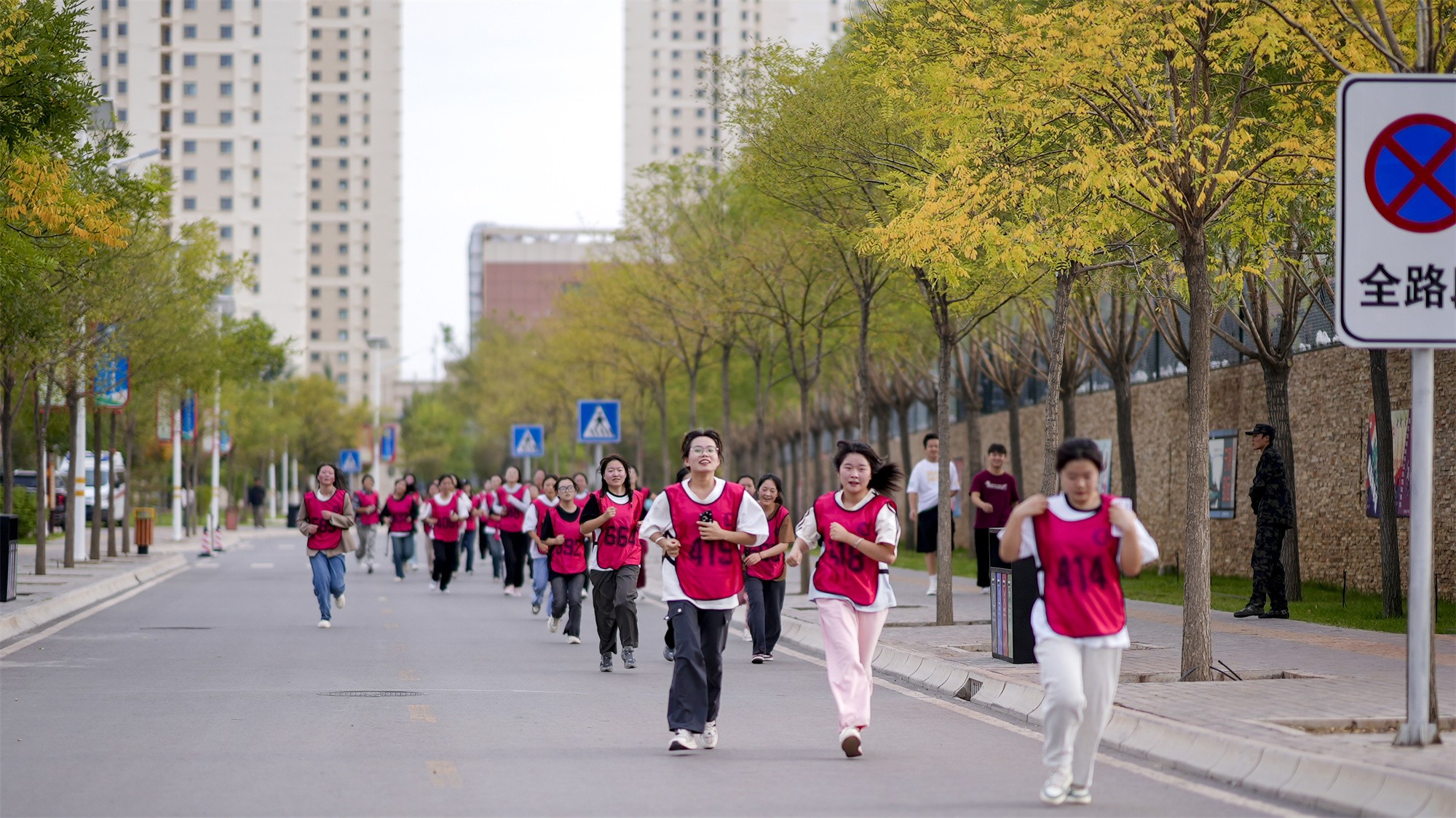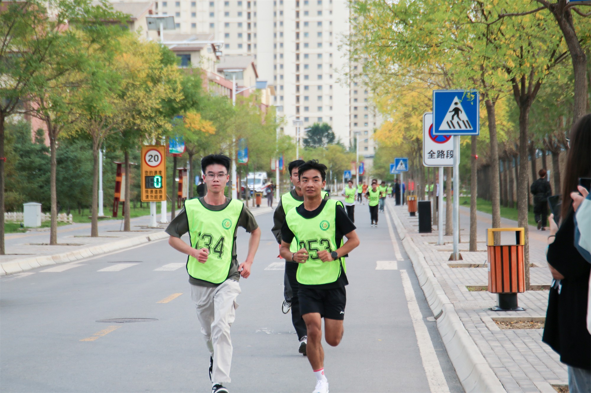 本次比赛分学生男子组、女子组、教职工中青年男女组、中老年男女组共六个组别,设学生男女4公里、教师3.5公里两个项目。随着发令枪响,近千名参赛师生从起点竞相出发,拉开了这场马拉松的序幕。赛道从体育馆出发,绕学校一周,金秋时节,校园内金菊绽放、青草茂盛,气候凉爽宜人。沿途的啦啦队们加油声、欢呼声此起彼伏,整个校园内弥漫着奋进、欢乐的氛围。