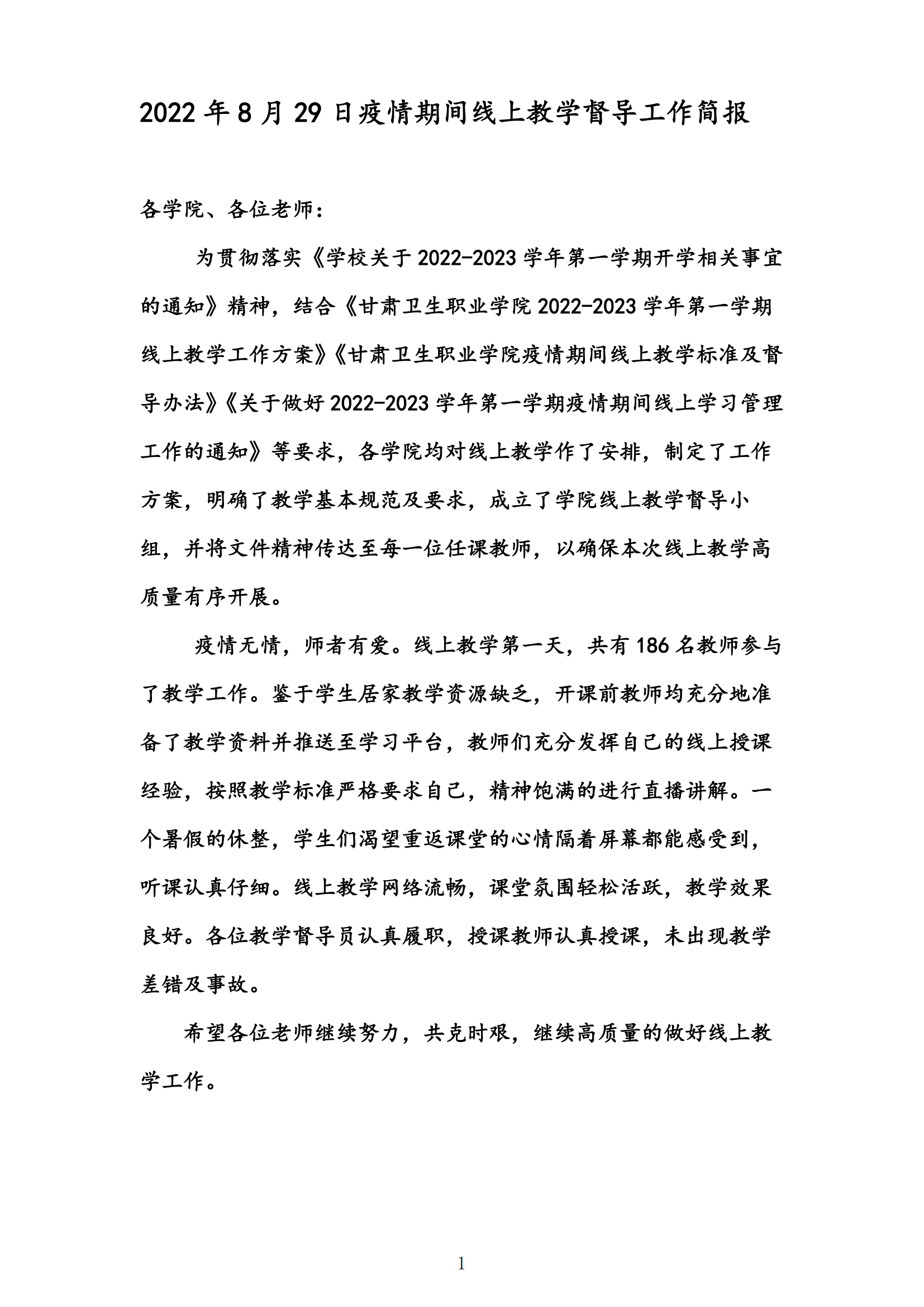 2022年8月29日疫情期间线上教学督导工作简报