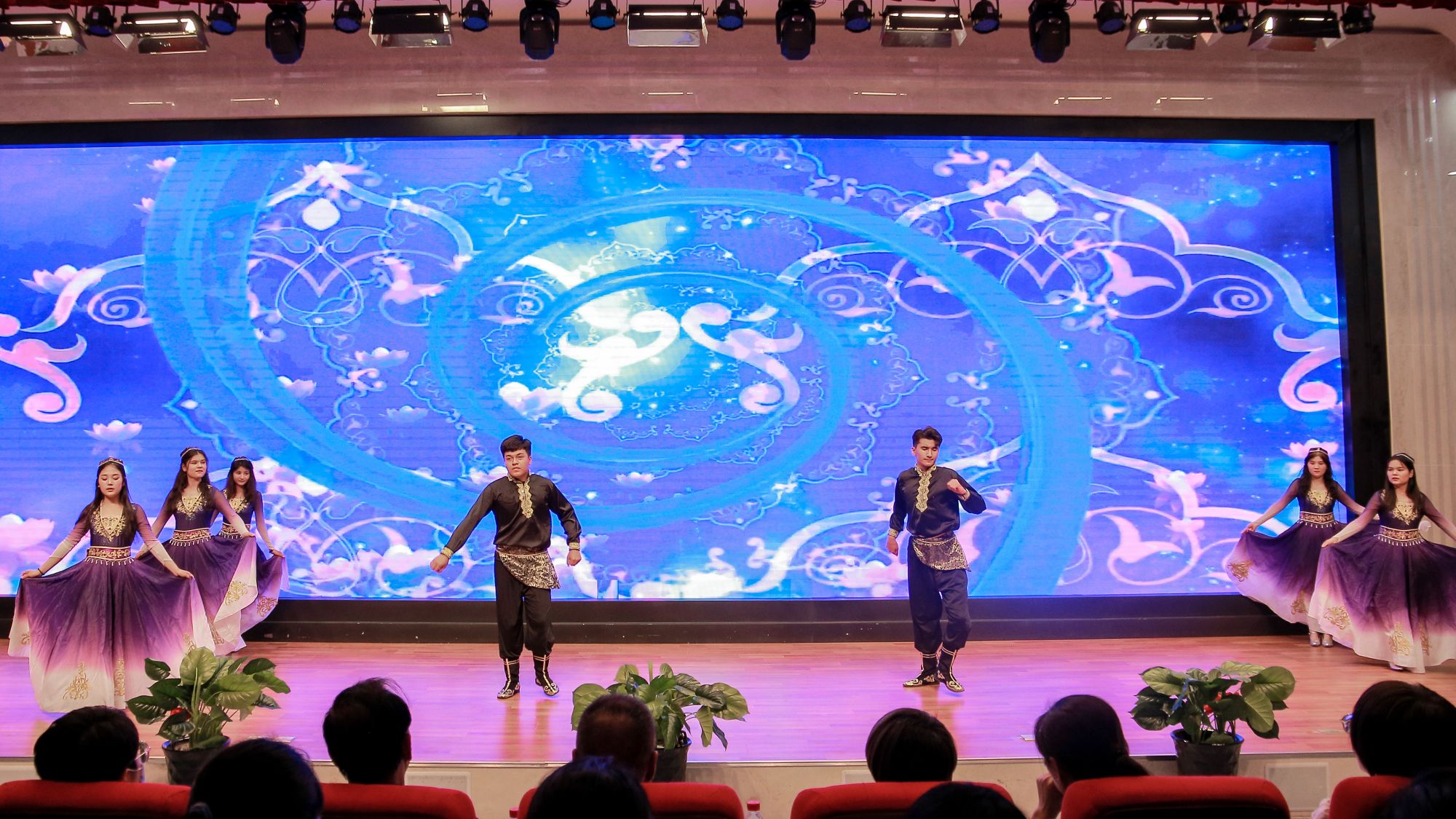 演出在开场舞《同心旋舞·维吾尔风情》中拉开帷幕,来自新疆的少数民族同学们身着特色服饰翩翩起舞,展现出一幅民族团结一家亲的美好画卷。《弥勒山歌》《草原欢歌》《七月的火把节》《蒙族串烧》《吉祥》《一梦回敦煌》等舞蹈充满浓郁的民族风情,呈现出各民族手挽手、肩并肩同心筑梦的动人图景。《乌兰巴托的夜》《藏歌联唱》等歌曲唱出了民族团结动人的旋律,主题演讲《石榴花开别样红》“颂”出了民族精神,诠释各民族青年永远跟党走、奋进新征程的坚定信念,抒发了对党、对祖国、对中国特色社会主义事业的忠诚与热爱。为提升大家的铸牢中华民族共同体意识,晚会还在表演中穿插了铸牢中华民族共同体意识知识竞答环节。最后,整场演出在大合唱《相亲相爱一家人》的悠扬歌声中落下帷幕。